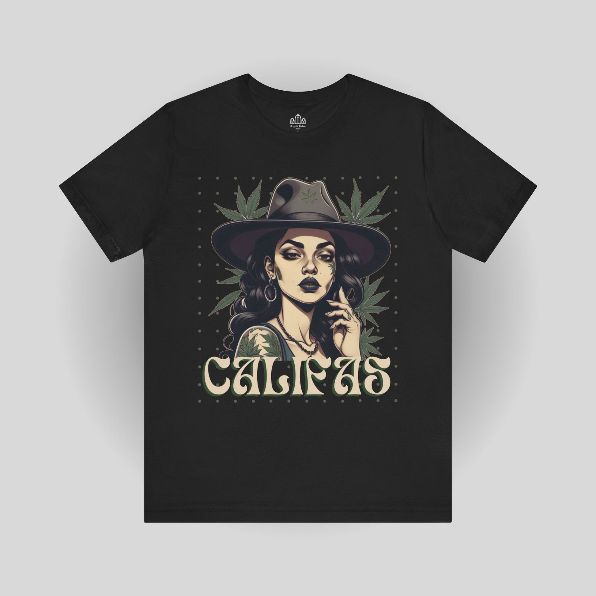 This Tee features a Califas pride design with 420 vibes and a girl with a fedora, perfect for creating a laid-back California vibe. It is ideal for those who love the West Coast aesthetic and want to show off their state pride. Perfect for casual wear, this Tee is great for everyday use, hanging out with friends, or attending music festivals.