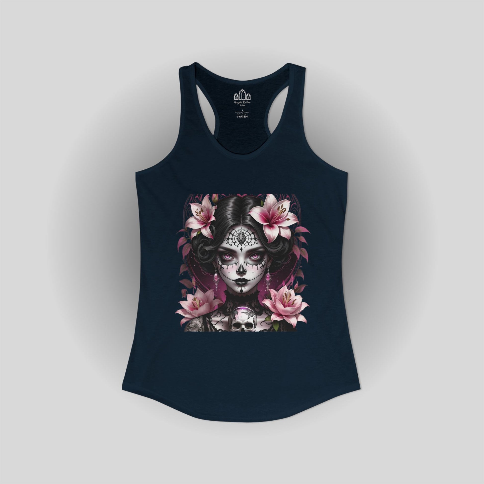 This lightweight racerback tank blends gothic charm with celestial romance. Black-styled and breathable, it carries a Stargazer Lily motif tuned for those who lean into alternative aesthetics—moody nights, star charts, and quiet rooftop hours. The scooped neckline and racerback silhouette let layered necklaces and tattoo flashes show; the fabric drapes easily for movement while keeping a flattering, classic fit. Wear it to late-night shows, intimate stargazing sessions, or everyday city wandering when you want an understated, witchy edge without sacrificing comfort.